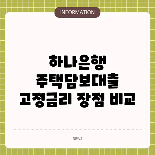 하나은행 주택담보대출 고정금리 장점 비교