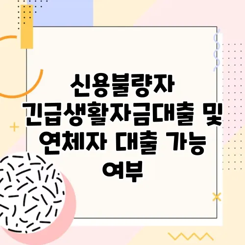 신용불량자 긴급생활자금대출 및 연체자 대출 가능 여부